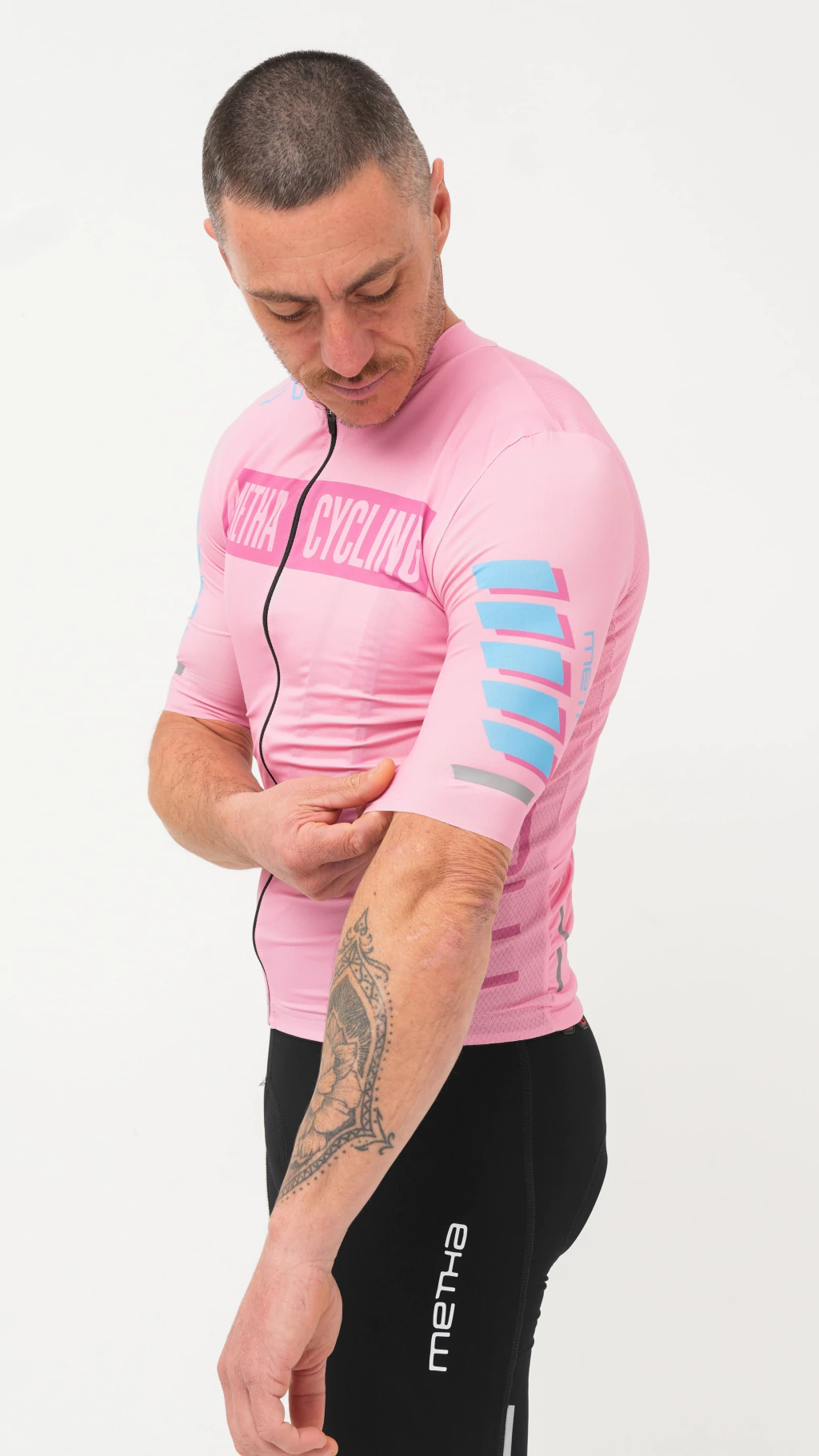 Jersey técnico de ciclismo con ajuste fit intermedio, combina confort y aerodinámica. Fabricado en tela spandex y elestano, poliester microperforado, mesh técnico en zonas estrategicas, laterales y espalda. Protección UV, tela ultra liviana y de alta elasticidad, garantiza transpirabilidad y adaptabilidad perfecta al cuerpo.
